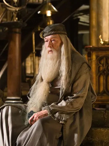 Albus Dumbledore est le célèbre directeur de l'école de magie Poudlard dans l'univers Harry Potter. Dans le film Harry Potter and the Half-blood Prince, il embarque Harry dans une quête terrible qui mènera à sa mort. S'il ne l'explique pas tout de suite à Harry, on sait que ce dernier soupçonne que Voldemort avait créé des horcruxes, des objets dans lesquels il avait placé des morceaux de son âme, ce qui l'empêchait ainsi de mourir et explique pourquoi il a pu revenir. Avant le début du film, ce dernier avait déjà trouvé un premier horcruxe, une bague, qu'il a réussi à détruire mais, ce faisant, a placé sur lui une malédiction qui avait commencé à affecter sa main et, à plus ou moins court terme, allait le tuer. Avant de mourir, il veut donc trouver un maximum d'informations sur ces horcruxes afin d'aider Harry à les détruire.