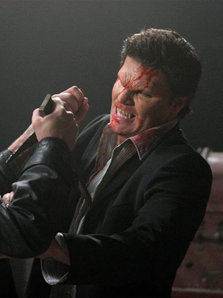 Angel est un personnage important de l'univers de la série Buffy The Vampire Slayer qui raconte la vie d'une lycéenne investie des pouvoirs de "la tueuse" pour combattre les vampires, démons et autres forces de l'ombre. Angel est au départ un informateur mystérieux de Buffy et on se rend compte très vite qu'il est en fait un vampire. Mais c'est un vampire qui a retrouvé son âme et ne se nourrit donc plus des humains et a décidé de se battre aux côtés de la tueuse pour tenter de racheter les horreurs qu'il a commises en tant que vampire. Plus d'une centaine d'années avant la série, Angel avait torturé et tué une jeune femme venant d'une famille de sorciers tziganes et, pour le punir, ils lui jetèrent une malédiction. Il retrouverait son âme, ce qui le rendrait incapable de se nourrir d'humains, mais la reperdrait s'il faisait l'expérience de ne serait-ce qu'un seul instant de pur bonheur. Malheureusement, il tombe amoureux de Buffy et ce moment arrive, le retransformant en milieu de saison 2 en vampire sanguinaire et cruel. Après cela, il est envoyé en enfer puis revient sur Terre et finit par retrouver son âme. En fin de saison 3, il décide de quitter Sunnydale, considérant qu'il est trop dangereux pour lui de rester avec Buffy. Il s'installe à Los Angeles et devient détective privé dans sa propre série.