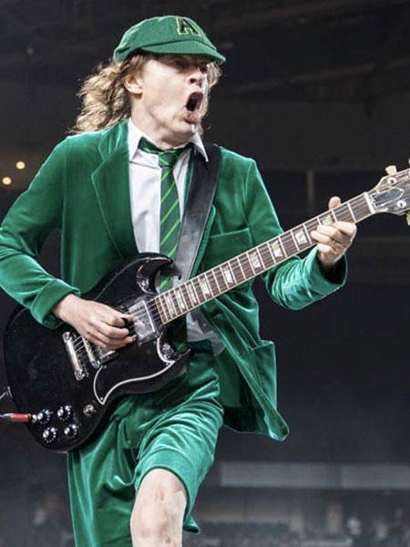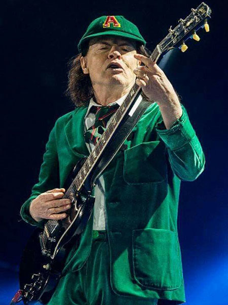 Angus Young est le célèbre guitariste et co-fondateur du groupe de hard rock AC/DC. Né en 1955 à Glasgow, lui et sa famille émigrent en Australie quand il est encore enfant. Ayant grandi dans une famille avec plusieurs musiciens, il commence lui aussi jeune. Il démarre sur un banjo bricolé avec six cordes puis une guitare acoustique d'occasion achetée par sa mère avant de pouvoir enfin s'acheter sa première guitare électrique Gibson en 1970. Adolescent, il jouait dans le groupe Kantuckee avant que lui et son frère Malcolm fondent AC/DC en 1973. Au-delà de son amour pour les guitares Gibson auxquelles il est toujours resté fidèle, il est aussi célèbre pour son énergie et son fameux duckwalk qu'il a emprunté à Chuck Berry qui l'a aussi inspiré musicalement. Parmi ses autres influences, il cite Jimi Hendrix, George Harrison et BB King. Il est aussi très connu pour sa fameuse tenue d'écolier qu'il continue de garder sur scène 50 ans plus tard.