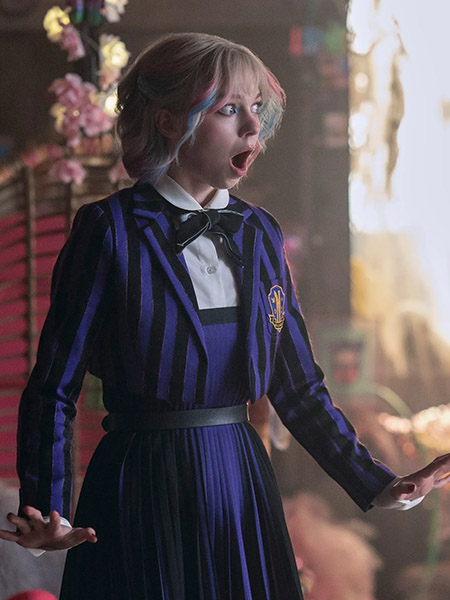 Enid Sinclair, l'un des personnages principaux de la série Netflix Wednesday, est de retour pour la saison 2. La colocataire et maintenant meilleure amie de Wednesday revient en saison 2 avec plus d'assurance. En effet, après avoir effectué sa première transformation en fin de saison 1, elle est maintenant plus sûre d'elle et passe beaucoup de temps avec sa "meute" au détriment de son ex petit-ami Ajax. Mais le répit est de courte durée pour Enid quand, d'une part, Mercredi a une vision qui lui fait penser qu'Enid est en danger de mort, et d'autre part, elle commence à se transformer en dehors des pleines lunes. Cela ferait d'elle une alpha, des loup-garous très puissants mais souvent rejetés par les autres et qui peuvent avoir du mal à contrôler leurs transformations.