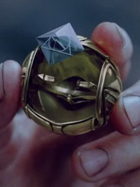Harry est ici représenté dans une des dernières scènes du dernier film quand il ouvre le vif d'or de son premier match que Dumbledore lui a cédé dans son testament. Celui-ci contient la pierre de résurrection mais Harry décide finalement de ne pas s'en servir. Il porte ici un jean bleu sale avec des chaussures noires, une veste marron et un gilet bleu par-dessus un t-shirt gris. Au niveau de la tête, on retrouve ses cheveux bruns, sa fameuse cicatrice et ses lunettes à cadres ronds.