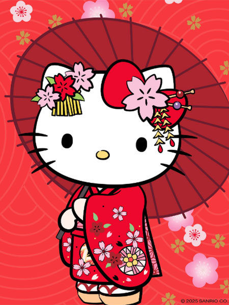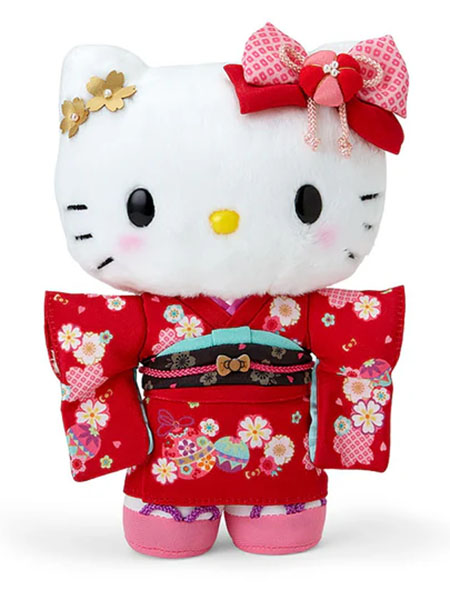 Pour cette figurine Pop, Kitty est ici représentée en kimono, une tenue traditionnelle japonaise. C'est un kimono rouge avec des fleurs de différentes couleurs. Dans ses petites pattes blanches, elle tient un petit parasol assorti rouge. Enfin, au lieu de son habituel noeud rouge simple, le haut de sa tête est décoré de petites fleurs, d'un noeud et d'un mini éventail rose.