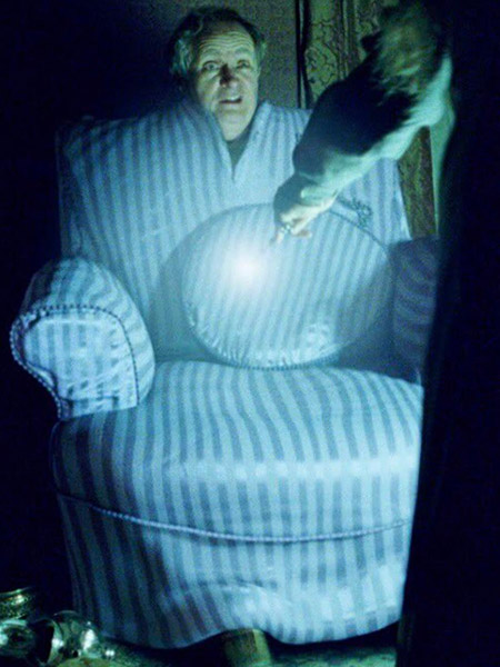 Quand Dumbledore et Harry se rendent chez Slughorn, on a l'impression que la maison a été fouillée et détruite par les mangemorts mais c'est une illusion créée par Slughorn qui s'est lui-même dissimulé sous forme de fauteuil. C'est un fauteuil à rayures roses et blanches avec des accoudoirs moelleux et un petit coussin. On retrouve seulement sa tête avec ses cheveux gris et blancs sur le dessus et ses pantoufles qui dépassent de sous le fauteuil.