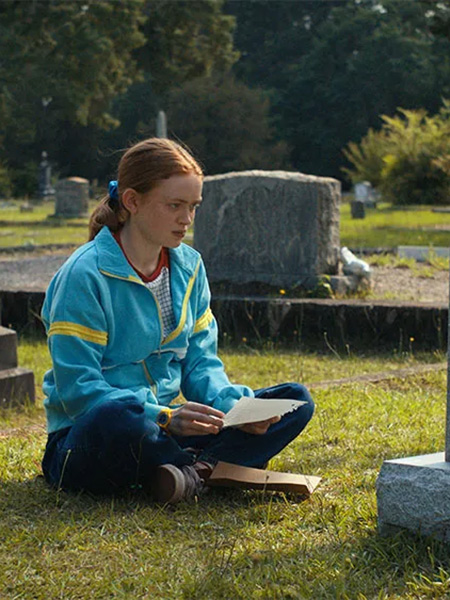 Max est ici représentée dans la fameuse scène du cimetière, où elle est venue voir la tombe de Billy et dans laquelle Vecna entre dans sa tête pour tenter de la tuer. On retrouve donc un socle avec la tombe et devant et les arbres derrière elle. Max est élevée dans les airs avec son jean bleu foncé, ses baskets rouges et son sweat bleu clair. On retrouve aussi ses cheveux roux attachés, ses tâches de rousseur et le casque sur ses oreilles que les garçons utilisent pour lui faire écouter de la musique, ce qui semble être la solution pour empêcher Vecna de rester dans sa tête.