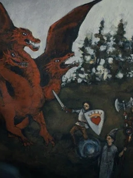 Mike est ici représentée tenant le dessin fait par Will et qu'il offre à ce dernier lors de sa venue en Californie, lui expliquant qu'il l'a représenté en héros. On comprend aussi que c'est une déclaration d'amour pour Will même si Mike ne le comprend pas. C'est un dessin où l'on voit le groupe en train de combattre un dragon à trois têtes, dans l'esprit de ceux de leurs jeux de rôle. Mike le tient dans ses deux mains et on retrouve aussi son pantalon noir avec ses baskets et son blouson vert et marron.