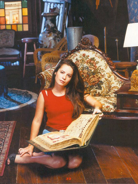 Piper est ici représentée tenant le livre des ombres dans ses mains et portant l'une des tenues que l'on peut voir sur certaines photos promo. Elle porte donc un jean bleu foncé avec des petites sandales à talons et un haut rouge laissant voir un peu de son ventre. Elle est ici assez maquillée avec des boucles d'oreille rouges et ses cheveux bruns longs sont livres autour de ses épaules. Enfin, elle tient donc le livre des ombres avec sa couverture verte ouverte dans sa main gauche.