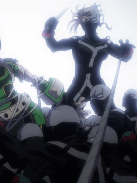 Himiko Toga est un personnage important de l'univers My Hero Academia et l'un des antagonistes principaux sur plusieurs périodes du manga et de la série animée. Himiko a un alter dangereux et sanglant puisqu'elle peut prendre l'apparence des personnes dont elle boit le sang. Elle peut aussi devenir invisible si elle retient sa respiration. Elle a choisi de suivre l'exemple du super-vilain Stain car elle rêve de vivre dans un monde sans règles. Elle est aussi une jeune femme assez instable puisqu'ayant une personnalité très enjouée même quand elle est en train de tuer, allant jusqu'à vouloir devenir amie avec des personnes qu'elle est en train de combattre. C'est le cas lors de son combat contre Ochaco et Tsuyu.