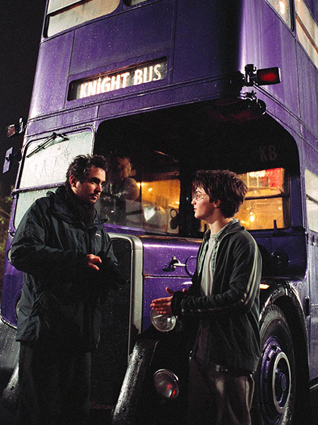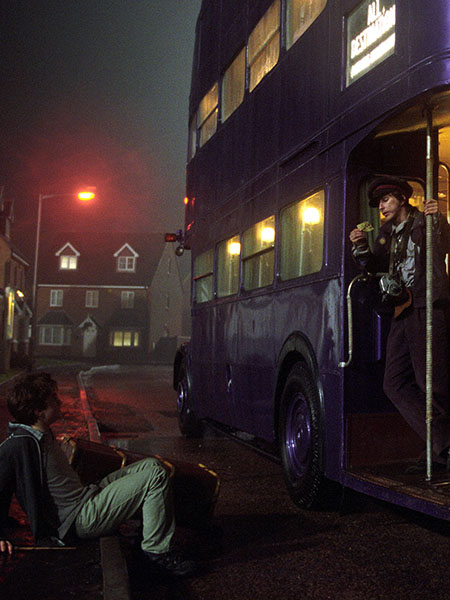Harry voit un knight bus pour la première fois au début du troisième film. Après qu'il ait perdu le contrôle et lancé un sort sur l'horrible soeur de son oncle, il s'énerve et décide de partir de la maison sans savoir où aller. C'est alors que débarque le knight bus, un bus double anglais violet. On lui explique qu'il arrive à la rescousse dès qu'il sent qu'un sorcier se retrouve perdu quelque part sans savoir comme s'en sortir et peut amener le sorcier où il le souhaite. A l'intérieur du bus, on retrouve de tout : des lits, des sièges classiques, etc... Le bus a aussi une sorte de bouclier magique qui lui permet de se déplacer comme il veut au milieu des moldus sans jamais être vu. C'est dans ce bus qu'Harry apprend l'existence de Sirius Black et qu'il s'est échappé de prison.