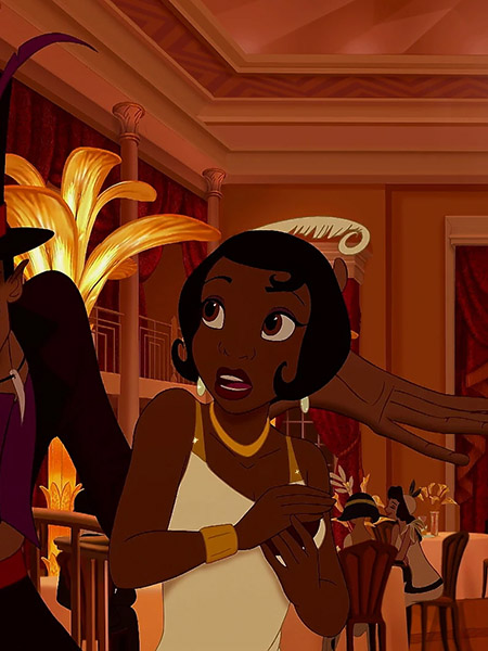 Tiana est l'héroïne du dessin animé de Disney La Princesse et la Grenouille. C'est une jeune femme noire de la Nouvelle Orléans dans les années 1920. Elle travaille très dur pour réaliser son rêve d'ouvrir son propre restaurant. Et juste quand elle est proche d'avoir réuni l'argent pour acheter les locaux pour son restaurant, on lui dit que son local va être vendu à quelqu'un d'autre. C'est alors que débarque Naveen, un prince qui a été changé en grenouille par un sorcier vaudou. Il lui demande de l'embrasser en échange de l'argent pour son restaurant. Mais les choses ne se passent pas comme prévues et c'est elle qui se retrouve transformée en grenouille. Ensemble, ils vont devoir faire tout un périple à travers le bayou pour échapper au sorcier vaudou et demander l'aide d'une autre autre sorcière vaudou.