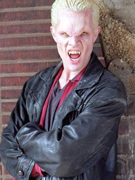 Spike est un personnage important de la série fantastique Buffy The Vampire Slayer. Dans cette série Buffy est, au départ, une jeune lycéenne qui a reçu les pouvoirs de "la tueuse". Il n'y en a qu'une par génération et elle reçoit une grande force, rapidité et résistance pour combattre les vampires, démons et autres forces du mal. Spike est un vampire qui apparait en saison 2 avec Drusilla, la vampire qu'il l'a transformé et qui est malade et il veut trouver une solution pour la guérir à Sunnydale. Il est ensuite rejoint par Angel, vampire amoureux de Buffy qui avait une âme mais qui l'a reperdue. Mais quand ce dernier a pour plan d'amener la fin du monde, Spike n'a pas envie de ça, s'allie avec Buffy un temps avant de partir avec Drusilla. On le retrouve en saison 4 quand il a été fait prisonnier par l'armée qui lui met une puce l'empêchant d'attaquer les humains. En saison 5, alors qu'il revient pour se venger de Buffy, il se rend compte qu'il est amoureux d'elle et finit par l'aider dans sa mission. Ils entament une relation en saison 6 mais quand elle arrête et qu'il tente de la violer, il décide de partir et on retrouve en saison 7, ce dernier ayant retrouvé son âme. A la fin de la série, il se sacrifie pour combattre le mal ultime aux côtés de Buffy et ses amis.