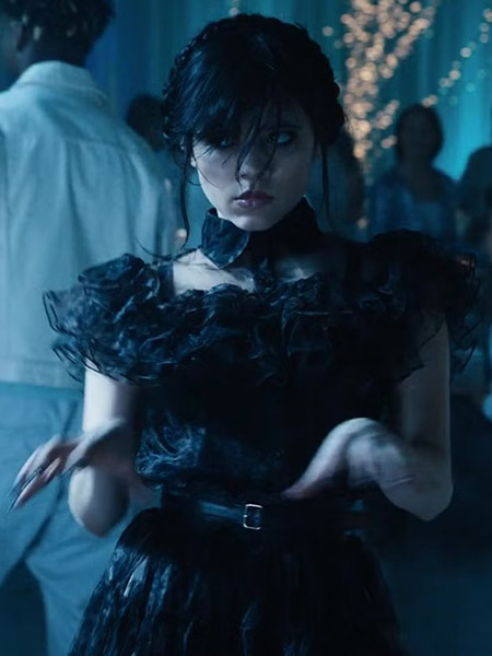 Pour cette nouvelle version du personnage, Wednesday est représentée avec la tenue qu'elle porte lors du bal Rave'n dans le quatrième épisode de la saison 1. Bien que la fête ait un dress code blanc, Wednesday s'y rend avec la fameuse robe noir que la chose a volé pour elle. C'est une longue robe à volants avec des manches volantées et une partie transparente sur le haut du buste. Ses habituelles nattes sont ici relevées en couronne sur le dessus de sa tête et elle est représentée effectuant cette fameuse drôle de danse rendant hommage à celle de la jeune actrice de la série des années 60.